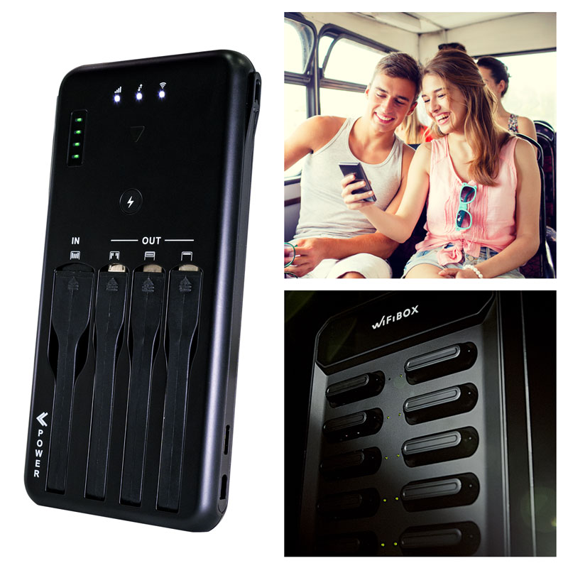 WiFiBOX device can also be used as a power bank, with charging cables already equipped.